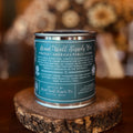 Half-pint all-natural soy candles handcrafted to impart the scents of the wild.