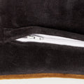 A decorative cotton pillow from displaying a fun Halloween-themed sentiment that reads "Home Sweet Haunted Home" embroidered on black velvet. Pillow features coordinating black velvet on back with caramel trim. Pillow includes a zipper to easily remove and clean machine-washable pillow cover. A fun seasonal home accent perfect for any room.