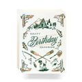 This fun outdoor birthday card has a cabin in the woods vibe making it perfect for the forest lover in your life.