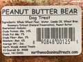 Individually wrapped peanut butter flavored bear-shaped dog treat by North Woods Animal Treats.