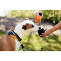 2-in-1 stainless steel dog water bottle with bowl lid and quick release carabiner!