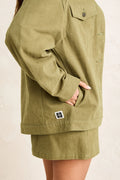 In a durable twill weave, the Essential Oversized Jacket features flap pockets and shank buttons for a utilitarian finish. Its oversized cut is designed for layering, finishing below the hips.