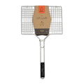 This stainless steel basket grill has a wooden handle design and is perfect for grilling chicken, steaks, fish, or whatever is on your BBQ menu!