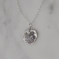 Introducing the exquisite solid .935 silver necklace adorned with a hand-illustrated fern design, perfect for nature lovers. This stunning piece of jewelry is crafted by melting high-quality silver into a ball and then hammering it flat to create a unique and organic shape. The intricate fern design is then hand-stamped onto the surface. Made with high-quality materials, this necklace is sure to last for years to come, becoming a cherished piece in any jewelry collection.