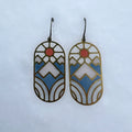 This modern earring features a brass nature-inspired design with soft-colored resin stained glass that catches the light beautifully. Handmade with high-quality components and solid brass findings, these delicate yet durable earrings are lightweight and comfortable to wear.