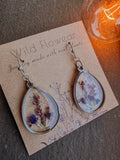 Capture the delicate beauty of nature with these dried lavender earrings, handcrafted with real dried lavender encased in crystal-clear resin. Created locally by Cherish, owner of Wild Flowear! Each pair is a miniature work of art—preserving the soft purple hues and organic elegance of lavender sprigs suspended in timeless stillness.