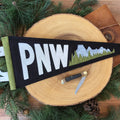 Brave & free and wild as the sea! This Cascadia pennant celebrates the beautiful mountain peaks for the Pacific Northwest.