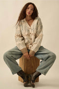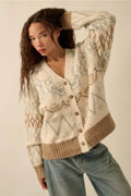 Meet the Hearth & Trail Cardigan — your cozy campfire companion and crisp-air confidante all in one. With a soft-brushed knit texture and vintage-inspired white-and-blue alpine argyle, it wraps you in the warmth of old cabins, fresh pine, and cinnamon-swirled mornings.