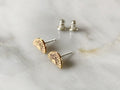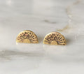 The husband/wife team at Sojourn Well hand stamps each pair of these delicate Sunrise studs on brass & solders it on a silver post. Each pair comes on a branded jewelry card with silicone earring backs.