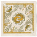 This 22” cotton bandana features a design of ferns, mushrooms and banana slugs. The illustration is silk screened with water-based ink in green and mustard yellow, on a natural tan colored bandana. These bandanas are designed by Pen+Pine & printed in California using eco-friendly methods.