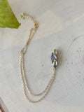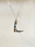 This small pocket knife boasts a striking mother-of-pearl inlay on both sides. Suspended from a 24-inch 14k gold-filled chain, it becomes a statement piece that compliments any outfit. With a stainless steel blade, this pendant knife is perfect for those who value both fashion and function. Small but mighty, it’s undoubtedly a pocket-sized powerhouse and an ideal addition to your essentials.