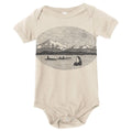 Soft oatmeal-heather onesies made in the USA using eco-friendly, water-based ink.