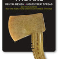 The Axe from Spunky Pup is a super-durable nylon chew toy, embedded with chicken flavor that your dog will love and keep them entertained for hours. Textured surface holds peanut butter or your dog's favorite treat spread.