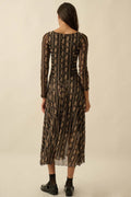 Slip into a little twilight magic with the Moonvine Midi Dress, where wild blooms meet soft shadows. This floral-print black mesh beauty weaves together panels of striped and floral lace for a look that’s both enchanting and effortless. The fitted bodice and drop waist create a graceful silhouette, while the gathered skirt moves like poetry in the breeze. Long lace sleeves and a calf-grazing hem bring just the right touch of mystery.