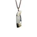 A super tiny folding knife with a semi-sharp blade on antiqued brass cable chain.
