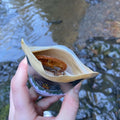 Rooibos tea is believed to be high in anti-oxidants, contains nine trace minerals including iron, potassium, magnesium, zinc, calcium and sodium, as well as many yet unknown micronutrients. The addition of star anise, cinnamon, lemon peel, clove, and honey sugar give this blend by Trail Toddy & Company its delicious Hot Toddy flavor. To top it off, they include a slice of dehydrated lemon that is simmered in Oregonian wildflower honey as a garnish. Contains no caffeine. Organic honeyroo tea.