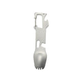 This 12-in-1 stainless steel fork multi-tool features a bottle opener, keyring hole, crosshead screwdriver, flat screwdriver, 4 size hex wrench, phone holder, carabiner, spoon, and, of course, a fork!
