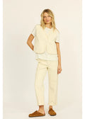 This cozy Sherpa vest features a relaxed fit, two handy welt pockets, and buttons that actually work—perfect for layering up with a splash of fun!