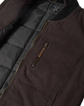 Details include a ribbed bomber-style collar for a classic, no-draft fit, a zip front with leather pull tab, and welt pockets at the waist and chest for utility without the bulk. Finished with logo embroidery on the chest and Dark Seas woven label branding for a touch of authenticity.